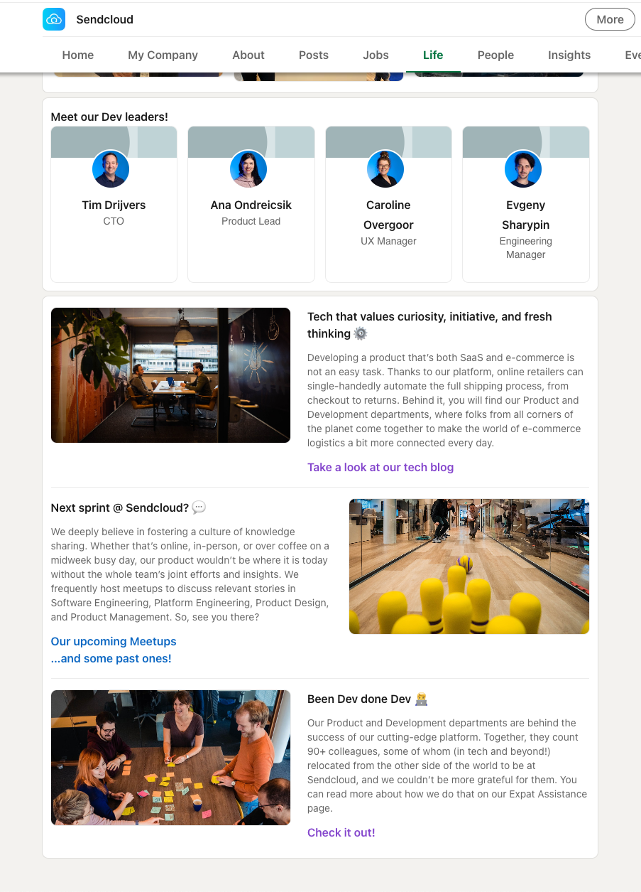 sendcloud life was one of my first projects as a copywriter for sendcloud. here i worked autonomously to collect employees' impressions and real-life experiences to best communicate what it’s like to work at the company.